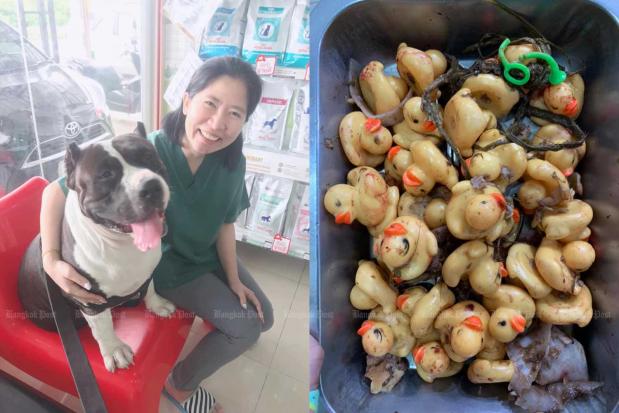 A Pattaya vet has warned dog lovers to stop buying toy ducks for their pets to play with, after removing 32 small rubber ducks from a Bulldog's stomach.