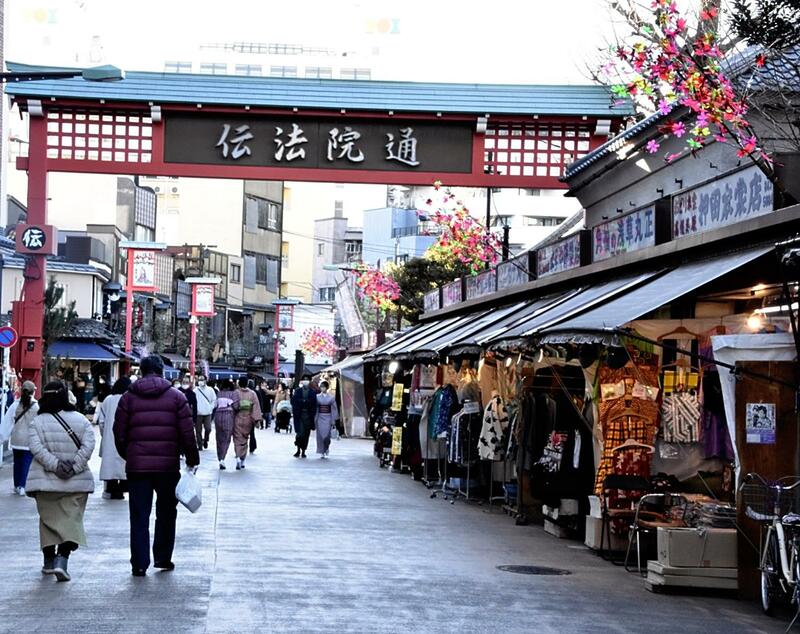 Denboin-dori is a 300-meter-long street perpendicular to the iconic Nakamise Shopping Street, the latter of which serves as an approach to Sensoji. Many restaurants and clothing stores stand side by side, and the streets are often crowded with tourists.