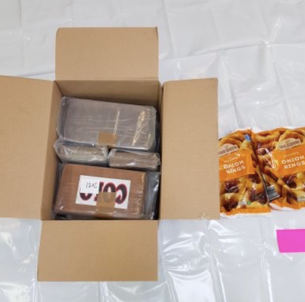 A haul of cocaine worth £33m has been found hidden inside a shipment of onion rings destined for the UK.