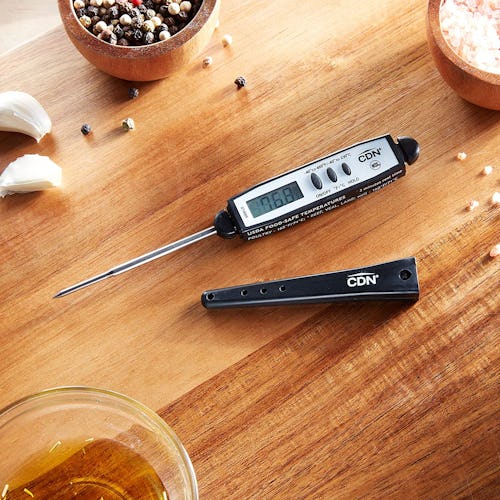 This digital instant-read thermometer earns high praise for its easy-to-read display and speedy response time, which is as little as six seconds. It has a temperature range of -40 to 450 degrees Fahrenheit (and you can also toggle to a Celsius setting) and will automatically shut off after 10 minutes of inactivity.