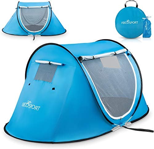 Pop-up Tent and Automatic Instant Portable Cabana Beach, Camping Tent Pop Up Shade Tent - Suitable for 2 People - 2 Doors - Water-Resistant, UV Protection Sun Shelter with Carrying Bag (Sky Blue)