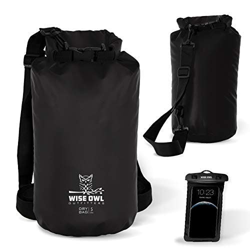 Wise Owl Outfitters Waterproof Dry Bag Backpack - Thick, Durable Water Bag for Kayaking, Camping, Boating, Beach and Outdoor Water Sports - Black, 5L