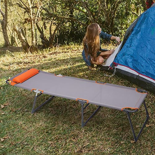 Whether you’re camping or lounging on the beach, this adjustable cot offers four positions and a removable pillow to keep you as comfortable as possible. You can sit up, recline, or lay flat, and the extra-long design stretches from head to toe. Even though its mesh fabric can support up to 250 pounds, it’s still lightweight and breathable. Combined with its steel-tube frame, it weighs just 13 pounds, so it’s easy to fold up and take with you on the go.