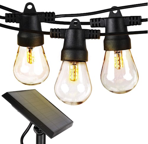 Nothing spruces up an outdoor space like string lights, but this 27-foot solar-powered strand is much easier than most. Because it has an attached solar panel that you can stake in the ground or clip to fences, railings, and roofs, you can hang these lights anywhere without worrying about a nearby outlet or extension cords. The solar panel collects power via the sun during the day, and when it gets dark, the Edison bulbs automatically turn on and give off up to six hours of bright, warm light. They’re also shatter-resistant and durable enough to handle rain, wind, snow, and heat.