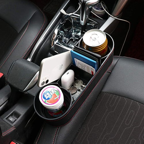 Don’t you hate it when you go through the drive-through at your favorite fast food establishment and, as you’re trying to get settled after getting your order and your change, you lose both a handful of coins and a few fries to the gap between your car seat and the center console? This car seat gap organizer fills that space, ensuring that doesn’t happen while also providing valuable storage space for your phone, sunglasses, drink, and much more.