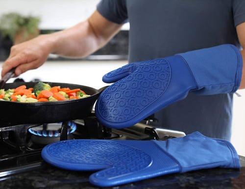 How many times have you pulled out your regular oven mitts or pot holders only to see stains all over them? These silicone oven mitts are a better choice because sauce and food remnants wipe right off. They’re heat-resistant to 450 degrees Fahrenheit and provide a nonslip grip for you to better hold hot pans and dishes. Each set comes with two oven mitts and two pot holders.