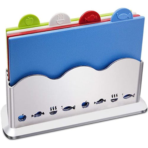 If you slice your tomatoes up on a cutting board you’ve just used to prepare raw chicken, you could be in big trouble. Instead of risking it, get these color-coded cutting boards that are food-safe, thanks to the specially labeled tabs that designate a certain board for each type of food. They’re dishwasher-safe and come with a brushed stainless steel holder for storage.
