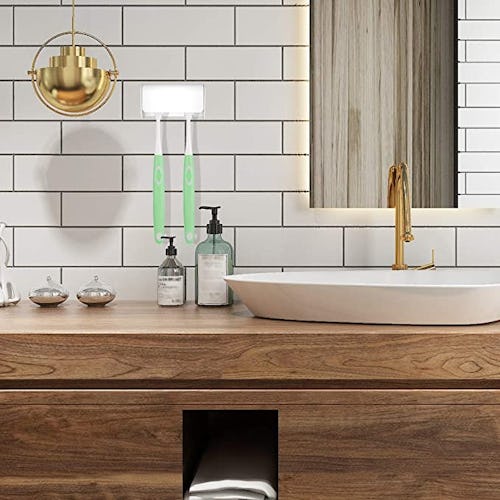 Finding a clean spot for your toothbrush is way less of a hassle with this wall-mounted holder, because it has a handy cover on the front. This sleek holder gives you a hidden and super clean spot for two toothbrushes. It has double-sided tape, so it’s easy to stick it right next to your toothpaste on the wall.