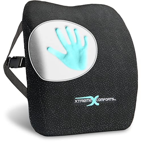 Xtreme Comforts Lumbar Back Support Pillow for Office Chair Cushion, House Chair Cushions, & Car Truck Seat - Memory Foam Office Chair Back Support w/ Adjustable Strap - Help Improve Sitting Posture