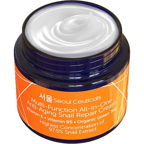 This skin cream features a high concentration of snail mucin filtrate paired with other ingredients like shea butter, organic aloe, and vitamin E — it’ll leave your skin feeling moisturized and help it appear brighter overall. It’s non-comedogenic as well to not clog your pores.