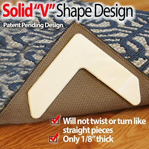 These adhesive rug grippers are applied to the corners of slippery rugs to keep them perfectly in place — preventing accidents and preserving the quality of your expensive throw rugs. The V-shape grips are made from sticky gel that keep rugs from curling and are safe to use on all floors, including hardwood.