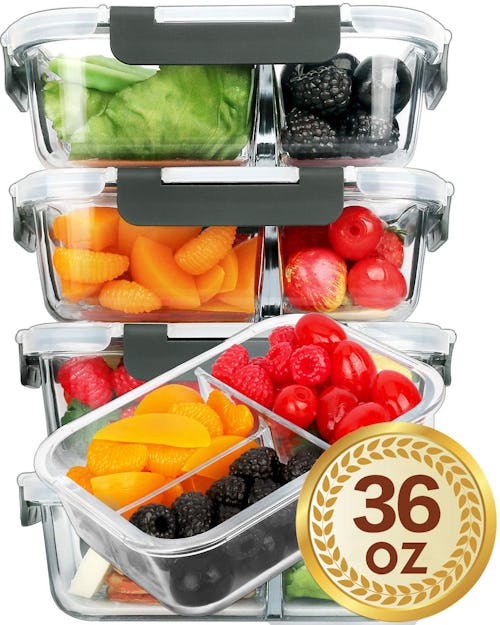 Keep fresh salad separate from chicken and keep your chicken from mingling with your dessert. A full and complete lunch is a reality with these bento-style lunch containers, which come five in a pack and feature three compartments in each container. The containers come with tight lids and are made with sturdy borosilicate glass that makes them safe in the microwave, freezer, and dishwasher.
