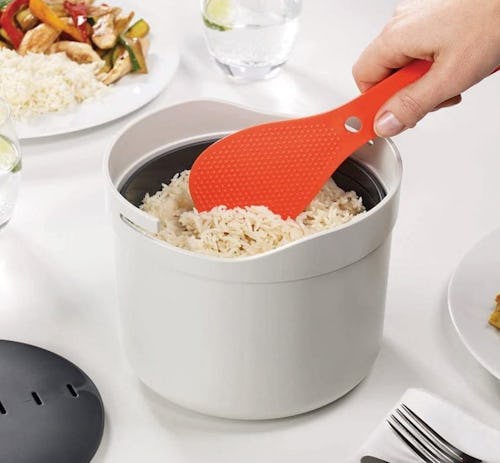 Don’t pull out your bulky rice cooker or a large pot to make rice for a meal. Instead, utilize this microwavable option — you can measure, wash, cook, and serve fluffy rice all from it. Then, after you enjoy your food, the entire thing can be cleaned in the dishwasher.