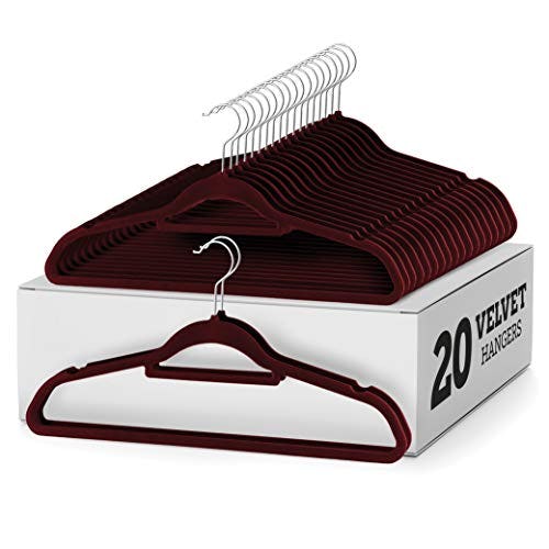 Premium Velvet Hangers with Tie Bar 20-Pack, Slim Space Saving Coat Hanger, Non Slip Wardrobe Hangers, Clothes Hangers 360° Swivel Hook, Suit, Shirt Dress & Trouser Hangers - Thin Flocked Felt Hangers