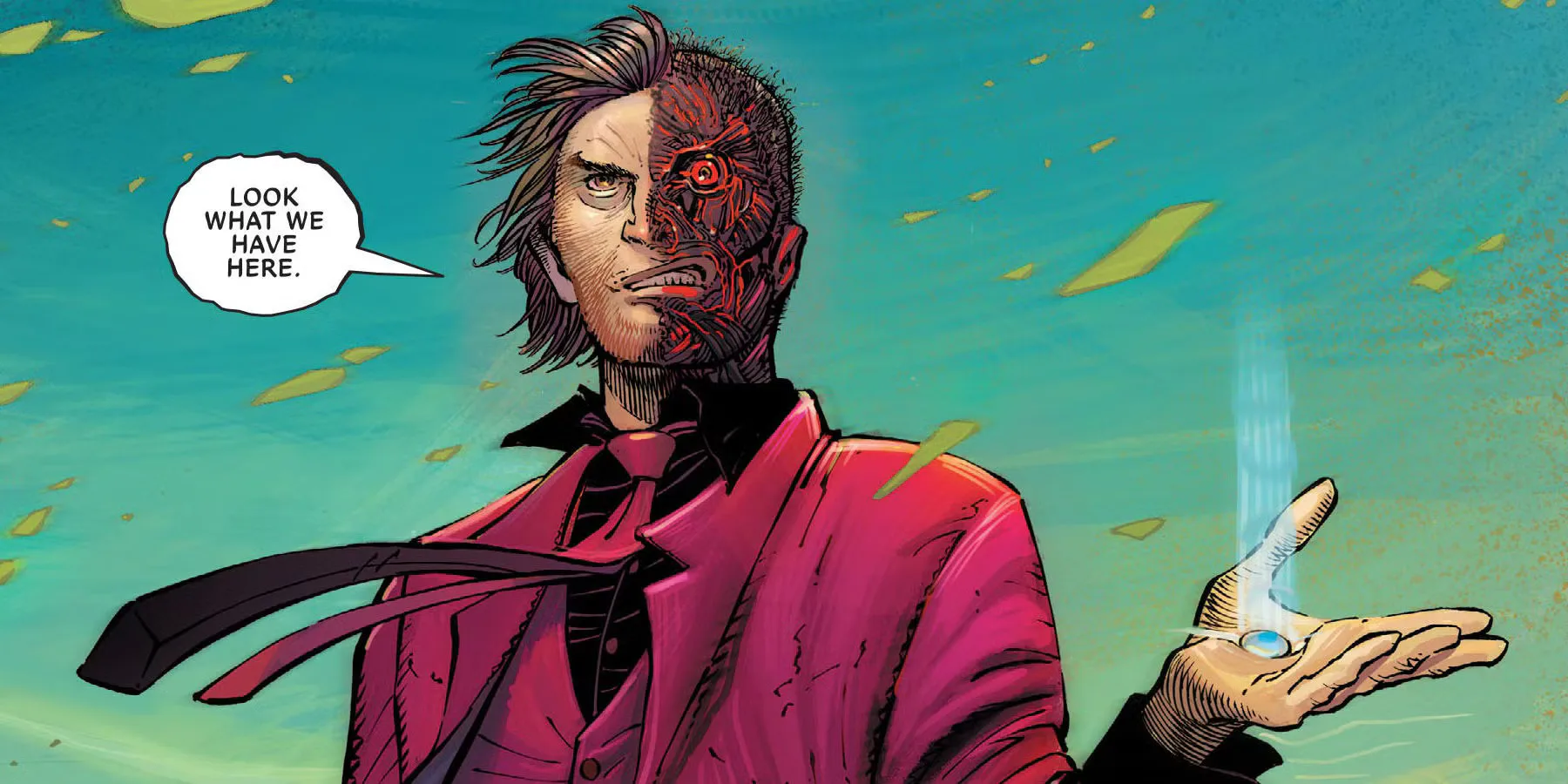 Even though Christopher Dent is deceased in the source material, there’s no indication that Reeves will go the same route. Alongside being the abuser responsible for Harvey’s fractured psyche, there’s a chance that Christopher could still be around and somehow still ingratiated in Gotham’s political infrastructure, still manipulating his son for his own ends (there’s even been fan speculation that Harvey’s father could be a part of the Court of Owls).