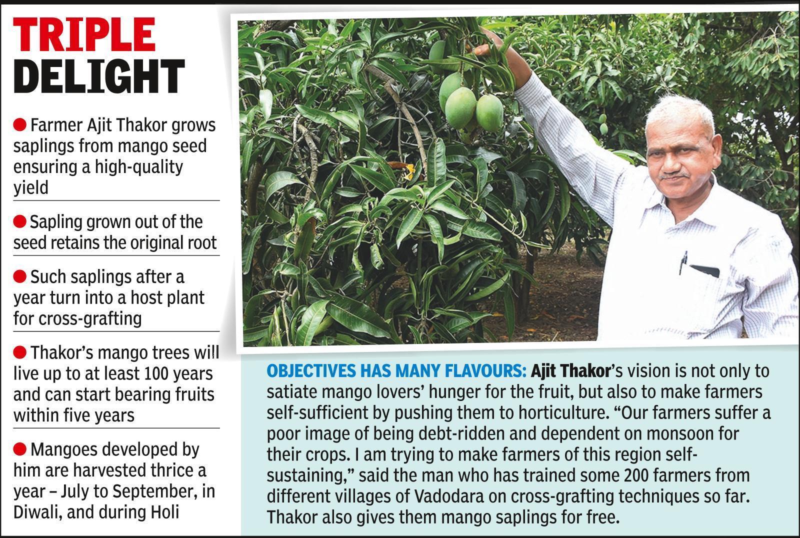 VADODARA: This news is sheer nectar for the die-hard mango fans who cannot get enough of the mango season every year. Thank mango farmer near Vadodara city, Ajit Thakor, who has answered your prayers and made the king of fruits truly season-less and round-the-year delight for Barodians.