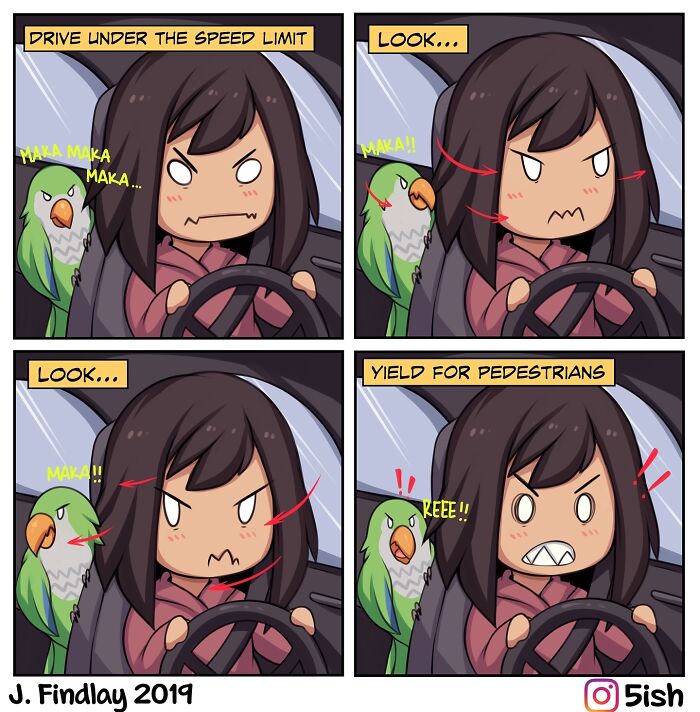 In an interview with Bored Panda, Findlay shared how she balances humor with deeper messages: "Speaking strictly on the creative process of it, because it does highlight elements of my personal life and feelings a lot of the time, I use humor as a sort of funhouse mirror projection to appreciate the otherwise mundane instance of life.