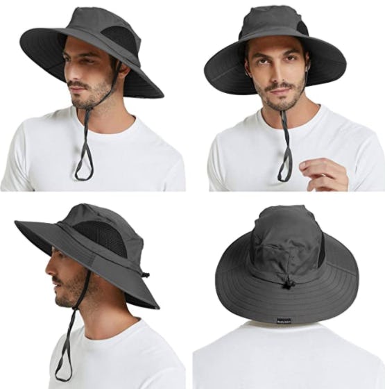 This wide-brim hat blocks 98% of UV rays, making it an effective way to protect yourself from the sun when you're in the great outdoors. A mesh panel helps promote airflow, so your head doesn't sweat, and the adjustable head and chin drawstrings let you get a snug but comfortable fit. Plus, it folds into a compact triangle that's small enough to stow in a backpack pocket. Choose from colors like khaki and army green.