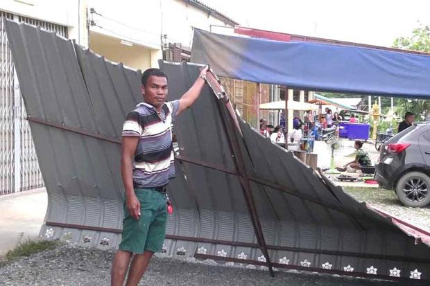 Surin Chaithong, the village chief, said of the 37 houses, 20 had their roofs and ceilings partly blown away by the storm. A coffee booth collapsed, damaging a car parked nearby.