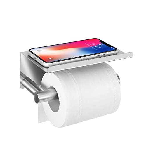 The toilet paper holder with a convenient shelf for your phone
