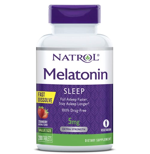 Melatonin is commonly used in sleep aids, but not all melatonin supplements are the same. What makes this particular supplement so popular is that it's quick dissolving, which means it will get to work fast. Each tablet has 5 milligrams of melatonin — for reference, experts recommending not exceeding 10 milligrams, and note that more isn't always better as it may increase day time sleepiness. Plus, they've got a natural strawberry flavor that fans have called "pleasant" and "excellent." Of course, before adding any supplement to your diet you should consult your doctor.