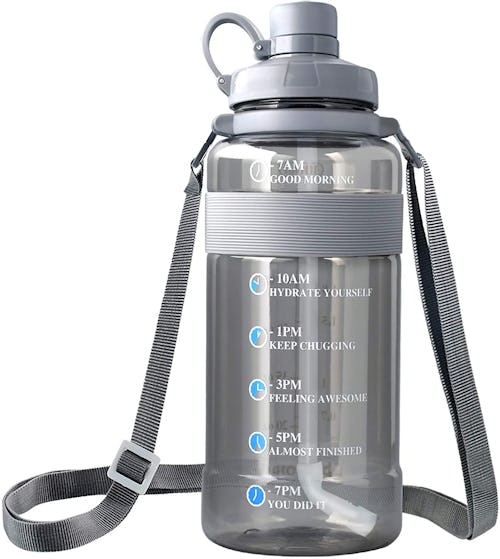 Not drinking enough water during the day can lead to tight, cramping muscles at night, so snag one of these tracker water bottles and drink up. It's a 100-ounce bottle that you only need to fill once at the start of the day. There's a time slot printed on the side, signifying every two to three hours and reminding you how much water you've drank. It even comes with an extra-long strap so you can easily take this water bottle on the go.