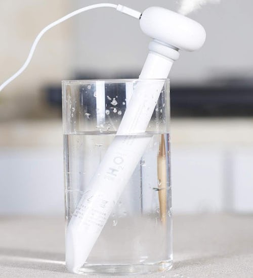 The FIGROL portable humidifier is designed to be used alongside any water container, anywhere. It's powered via USB and emits a soothing, cool mist — and since the length of the stem is adjustable, it'll fit in short cups, tall glasses, large carafes, and disposable water bottles. Hundreds of reviewers have given it a 4.5-star rating because it's quiet, convenient, and helps everything from dry eyes to improved breathing.