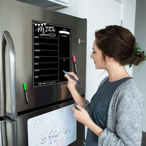 This magnetic chalkboard has a near-perfect 4.8-star rating. Reviewers say it's a "must-have" for meal-planning because it organizes the week into individual days. It also has a blank spot for notes and is always within reach, so you can add something to your grocery list before you forget. It even comes with three neon liquid-chalk markers and attaches to your refrigerator without damage.