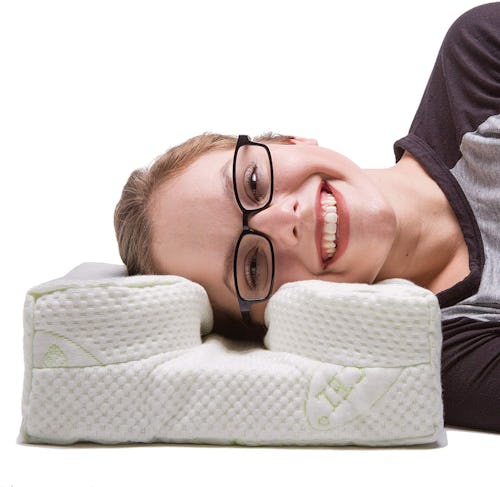 If you wear glasses, lying on your side to watch TV is an uncomfortable experience. This pillow is thoughtfully designed with a cut-out to allow room for your specs, but still supports your head and neck with body-conforming latex. It's also super easy to fold up and take with you when traveling.