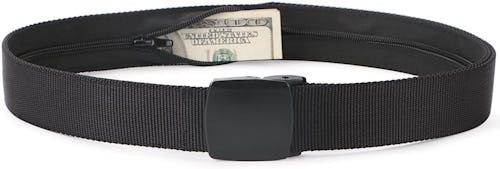 Reviewers have worn this money belt with a secret pocket for both travel and daily use. Its nylon design and adjustable size mean it functions as an everyday belt, but the hidden zipper pocket keeps your money, a house key, or a copy of your passport stored safely against your waist. That way, your essentials are never far and entirely protected against pickpockets.