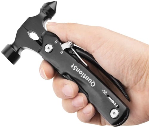 Even though it measures just 5.4 inches long, the hammer multi-tool features 12 essentials in one. It's made of stainless-steel and transforms into various shapes to provide you with a hammer, wire cutter, bottle opener, saw, and file, as well as different pliers, screwdrivers, and knives. One reviewer described it as "extremely unique compared to other multipurpose tools" and great to "keep in glovebox, tackle box or pocket."