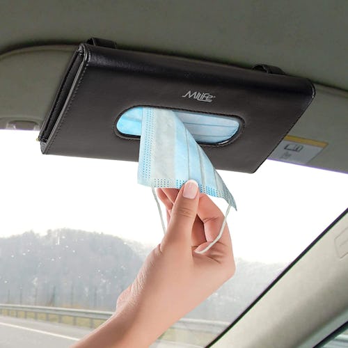 Forgot your mask? It won't happen again if you have this visor-mounted mask holder in place. The refillable design holds up to 20 disposable three-ply masks, with 10 included in the purchase. A generous opening offers easy access while keeping your masks off the floor or rearview mirror.