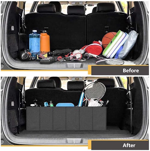 If you've ever opened your hatch to find a jumble of grocery bags, this trunk organizer is totally what you need. Three compartments offer easy organization for your purchases, sporting goods, and more. The whole thing collapses for storage between uses and expands to fit your car.
