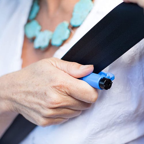 This emergency tool is made to cut thick seatbelts and push through window glass, helping to provide a quick exit from the vehicle if needed. It's lightweight and attaches to your keychain for carrying, and it's even backed by dozens of first responder reviews.