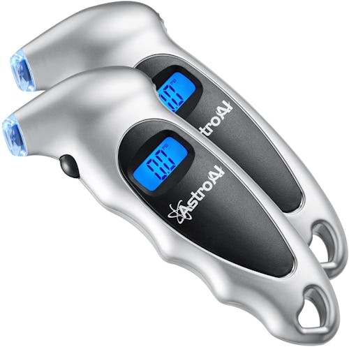 Keep one of these tire pressure gauges in your car and another in your garage so you never go without. Four settings let you check bicycle, car, and truck tires, and the backlit display is easy to read. This gauge has an ergonomic grip for effortless handling.