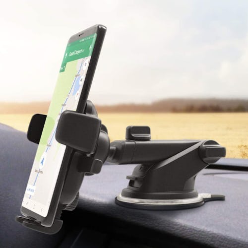 Keep your phone secure and visible with this one-touch dash-mount holder. When in use, the holder will automatically grip your phone — and it's compatible with most newer models. It even has a telescopic arm with a pivoting head for super-comfortable viewing. Plus, a suction-cup holder with a sturdy dash pad provides reliable hold.