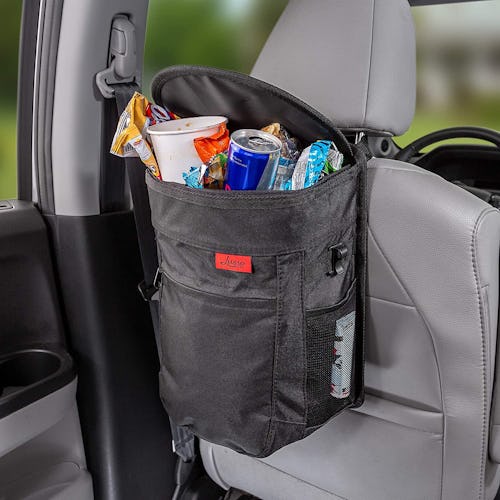 This spill-proof trash can saves you both time and sanity by keeping your car tidy. You can hang it from the back of a seat, the glove compartment, or you can place it right on the floor. This soft and flexible trash can features a zippered lid, so it won't make a mess even if it tips over. It also features an odor-blocking liner that you can remove and clean when needed.