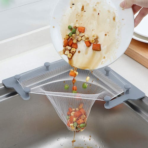 This kitchen sink strainer is so genius, you'll wish you'd bought one sooner. It snaps onto the corner of any standard kitchen sink, and it features a mesh "garbage bag" that can hold all your leftover food that you don't want to go down the drain. The bag stretches to accommodate the size and weight of whatever you put in it, and you can remove it to toss the trash. Just give it a rinse, and it's good to go again.