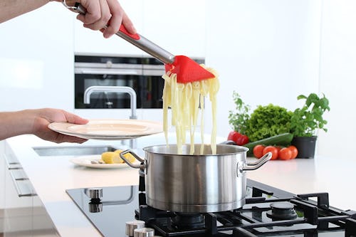 Condense your cooking tool collection with this one that functions as tongs, a scooper, strainer, and scraper. It's super handy for removing cooked pasta from hot water, stirring sauce or eggs, or even serving rice or salad. The silicone tips of the tongs resist heat up to 460 degrees Fahrenheit. It's also dishwasher-safe.