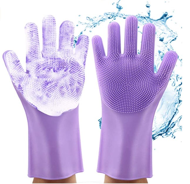 33. These silicone gloves with built-in bristles for washing the dishes