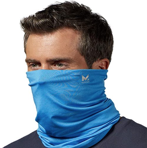 14. This cooling neck gaiter that gets chilly when it's damp