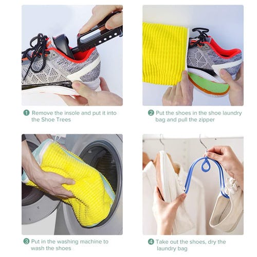 Putting a pair of sneakers in the washer and dryer is like rolling dice. Sometimes, the shoes emerge clean and improved. Other times, they're destroyed by the agitation and dryer spinning. It turns out that what they need is some protection while they ride through those machines, and this bag is it. There are microfiber fingers inside the bag that scrub the shoes clean while they wash — but the shoes travel through the machine protected. Put the bags — with shoes inside them — right in the washer and dryer. Not only will the shoes emerge safe and clean, but you won't have to listen to the shoes kicking the machine.