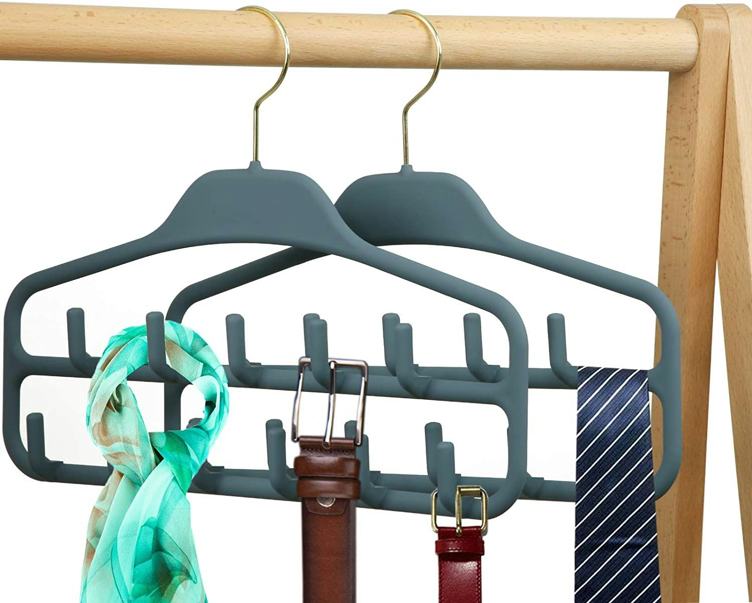 Tired of finding your ties and hats have fallen off your hangers? Just upgrade to this space-saving one that's covered in grippy non-slip material. It features 11 hooks, and the frame is so sturdy that it can support up to 6.6 pounds — perfect for heavy belts and jewelry.