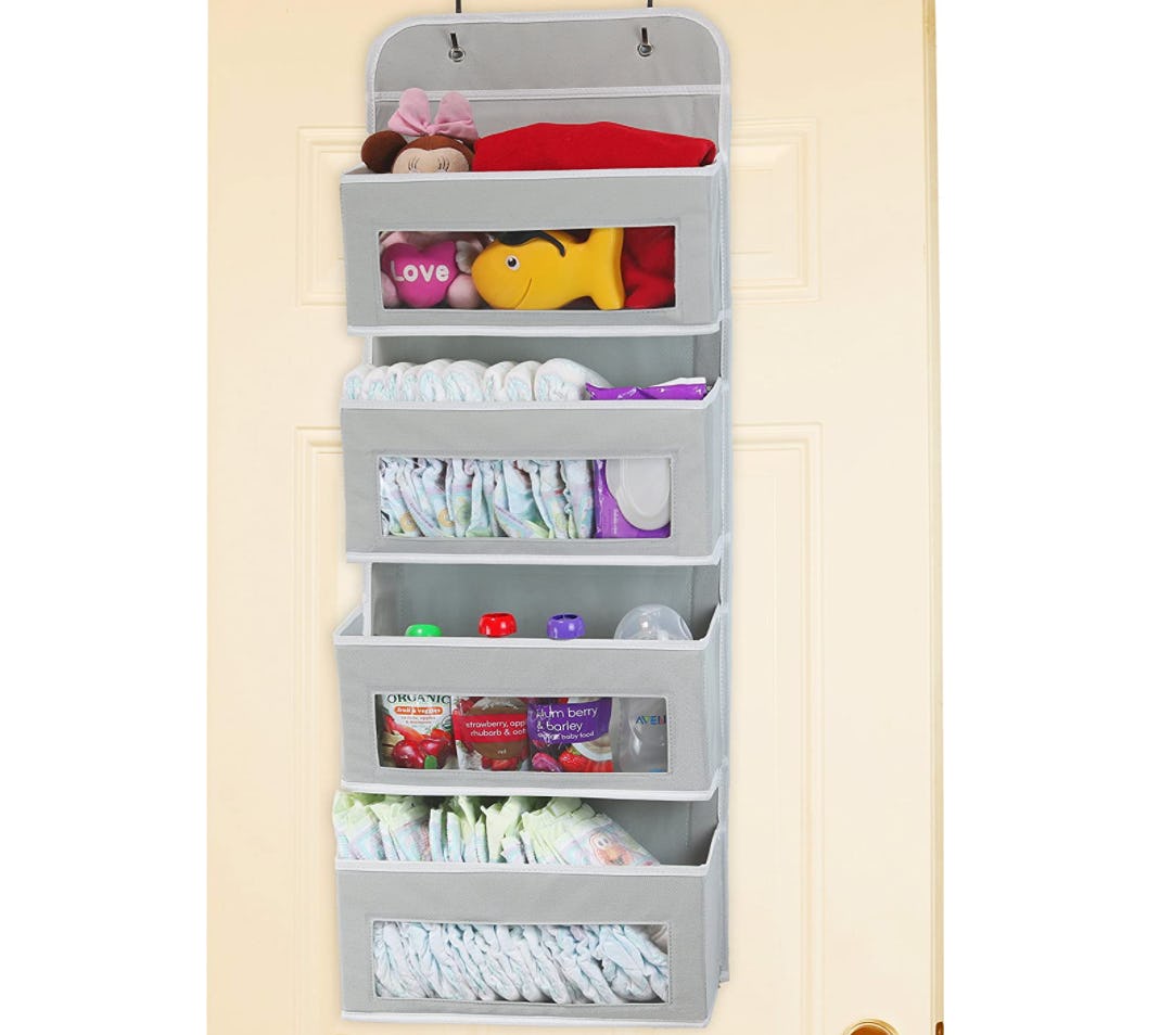 Not only are the pockets on this organizer large enough for items like toys and diapers, but zero tools are necessary for installation — just hang it over your door using the included hooks and it's ready to go. Unlike other organizers, this one also comes in a variety of tones: pink, beige, grey, turquoise, brown, and more.