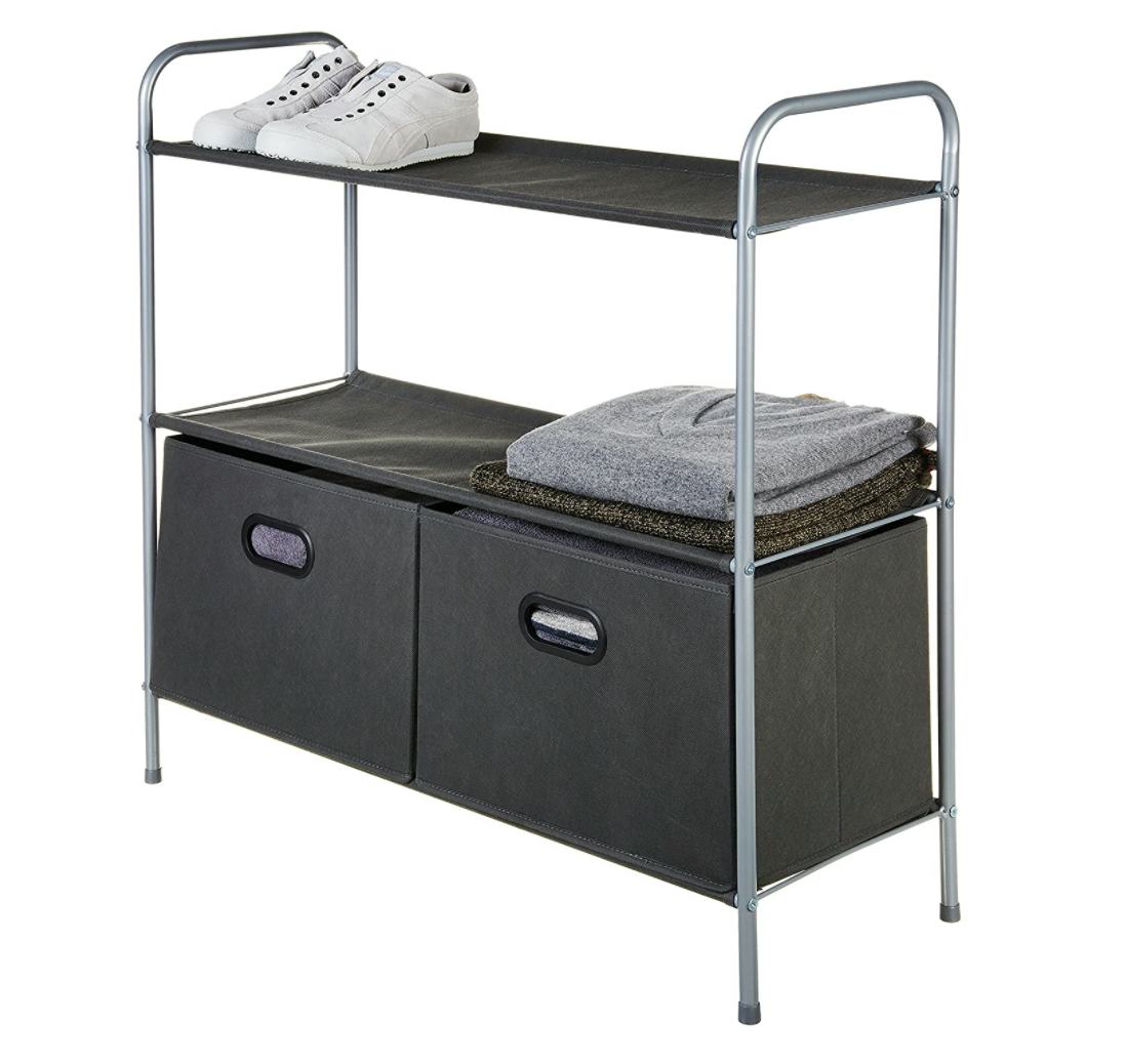 Pop these shelves into your closet for a handy place to store shoes, or even fold up some blankets in the two drawers. The frame is made from powder-coated steel, and it's sturdy enough that it each shelf can safely support up to 10 pounds.