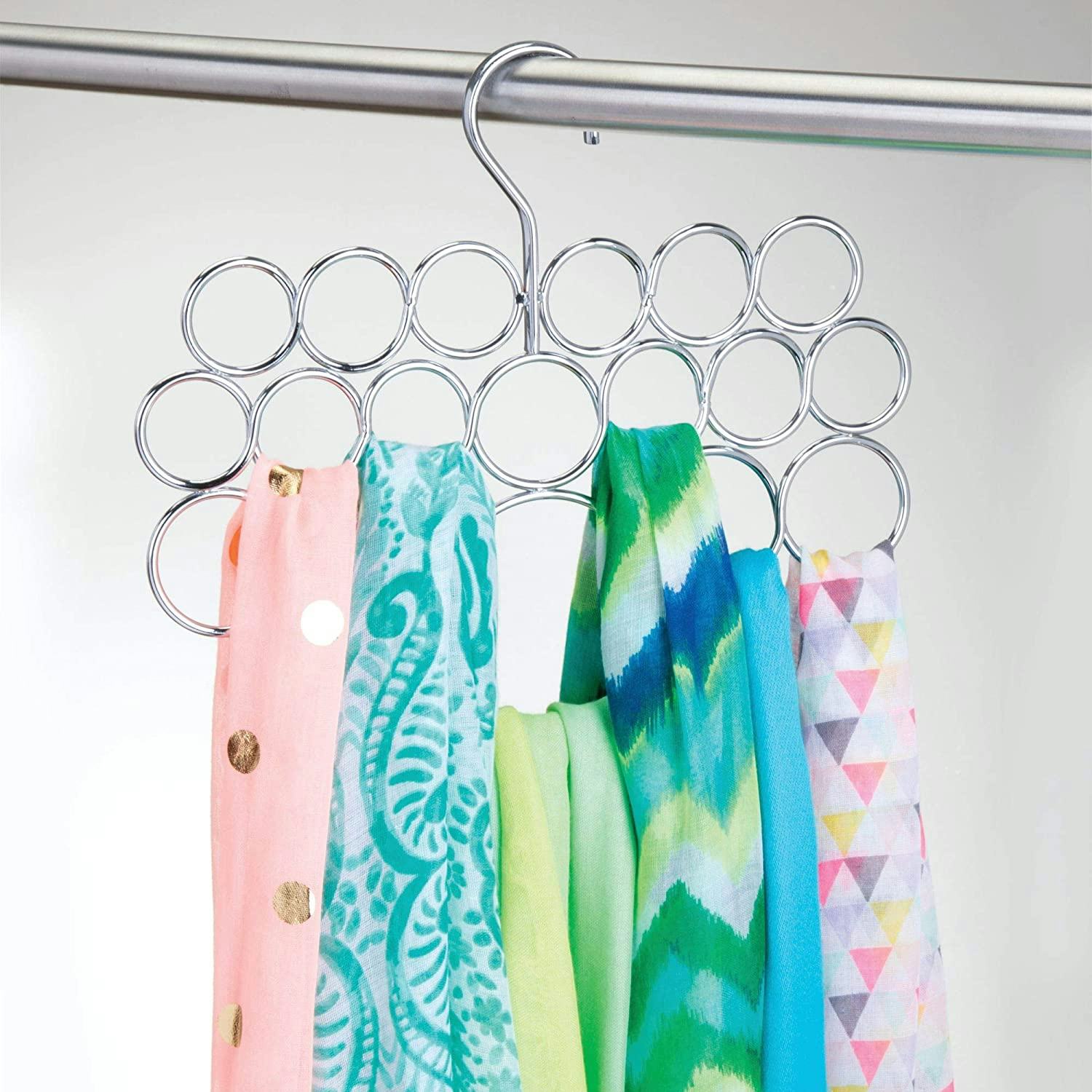No matter whether your closet is overflowing with scarves, belts, shawls, or even socks, this hanger can help. It's made from sleek chrome-plated steel that stands up against the test of time, while the 18 storage loops provide tons of space for all your garments.