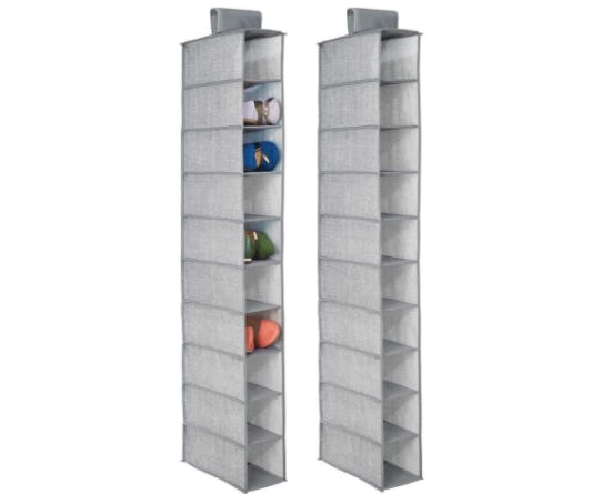 Organize your shoes or other items with this two-pack of closet organizers — without having to free up any additional floor or shelf space. All you need to do is slip the fabric loop over your closet rod, using the hook and loop closure to secure it, and you're all set. Each organizer has 10 compartments, and you can choose from a bunch of different colors.