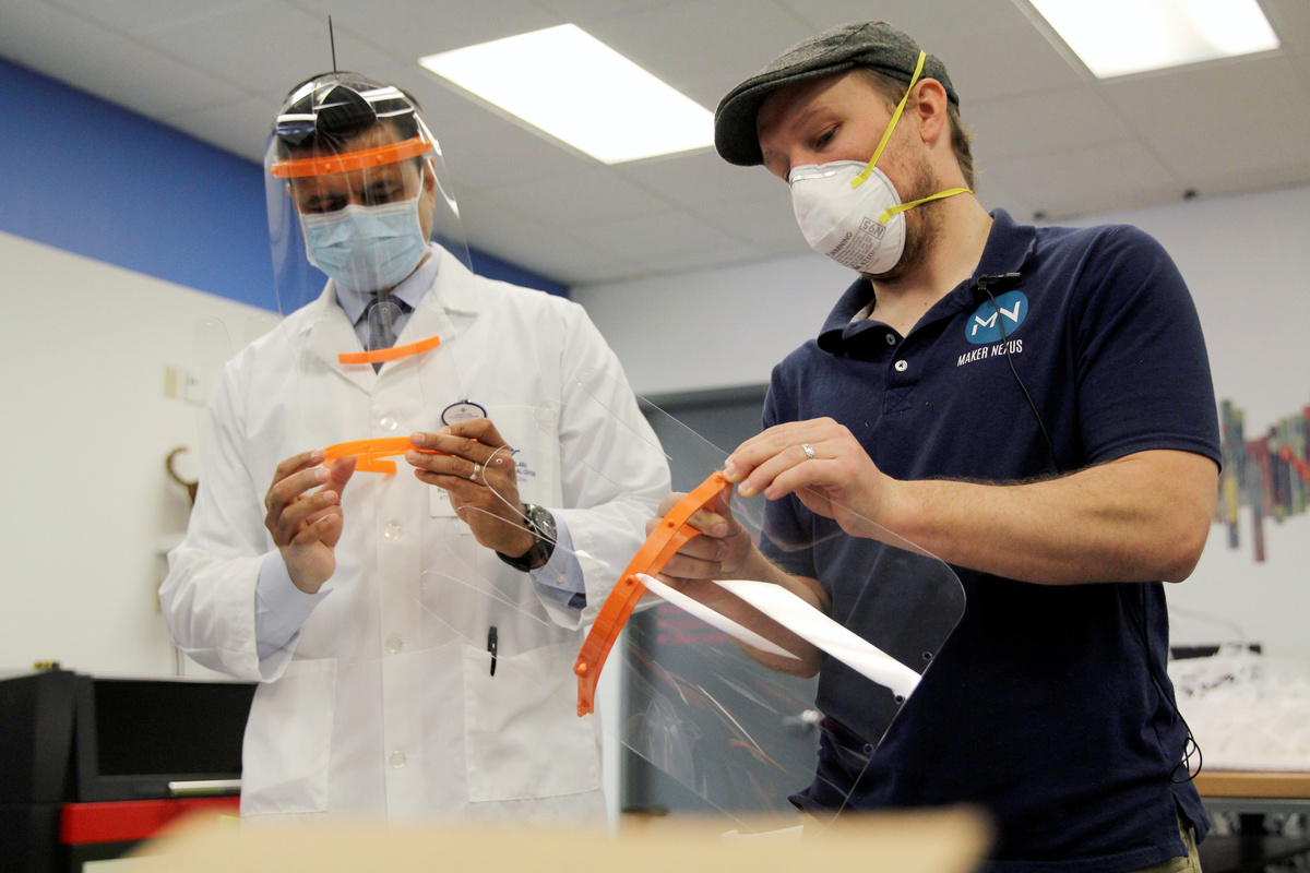 In Sunnyvale, California, community workspace nonprofit Maker Nexus has been running its 13 3D printers and three laser cutters nonstop. The company produced 1,800 masks for local hospitals and now has requests for another 13,000.