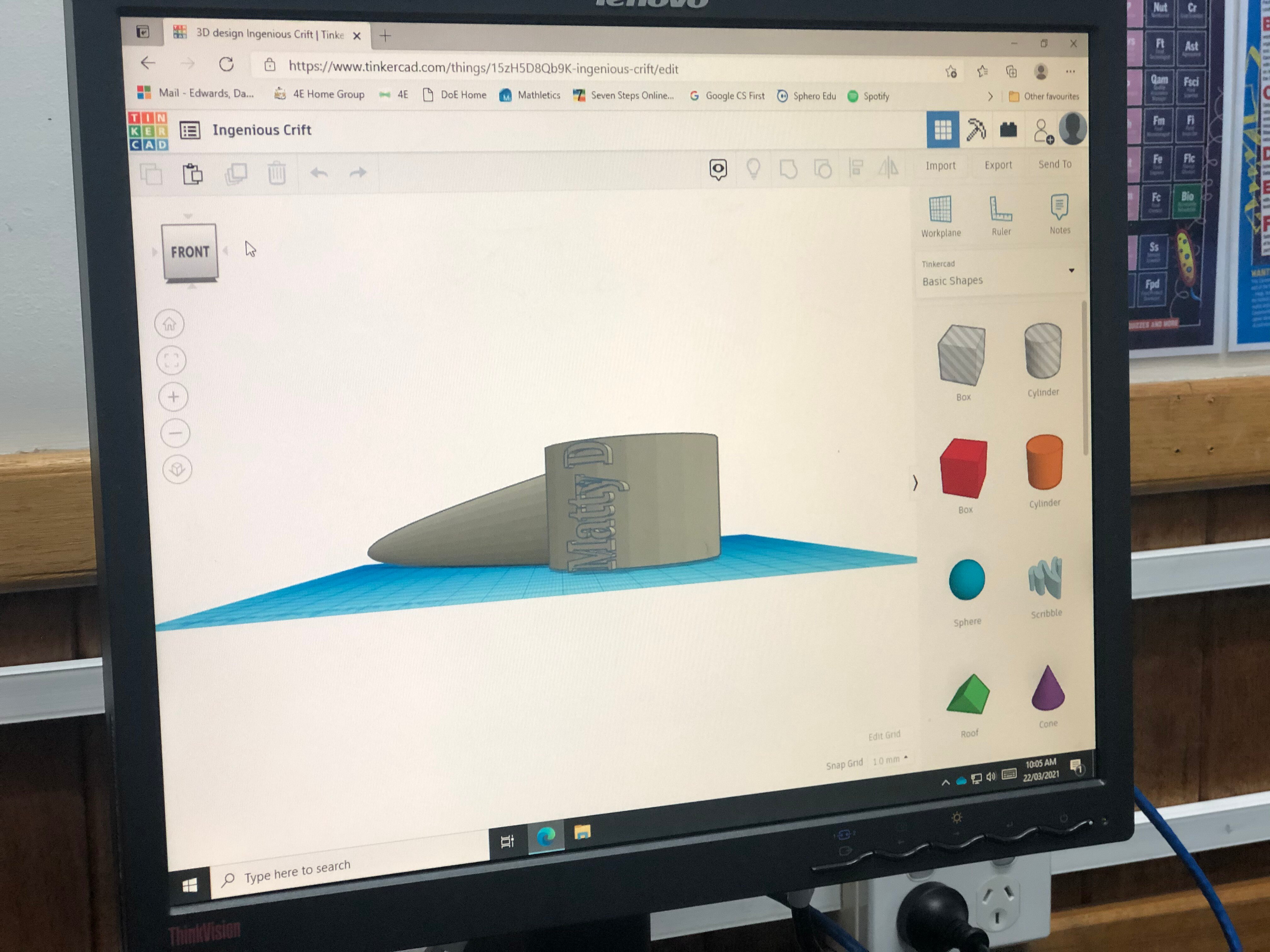 The finished product was made using a 3D printer at Montello Primary with the design help of another student, Addison.
