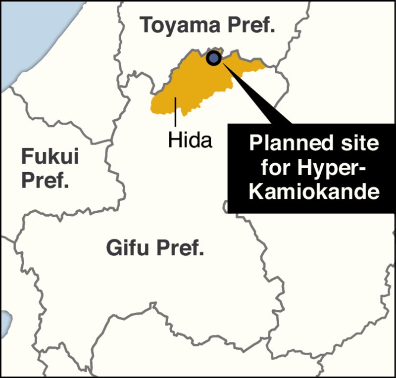 The facility would be constructed underground in the mountains of Hida by the University of Tokyo's Institute for Cosmic Ray Research.